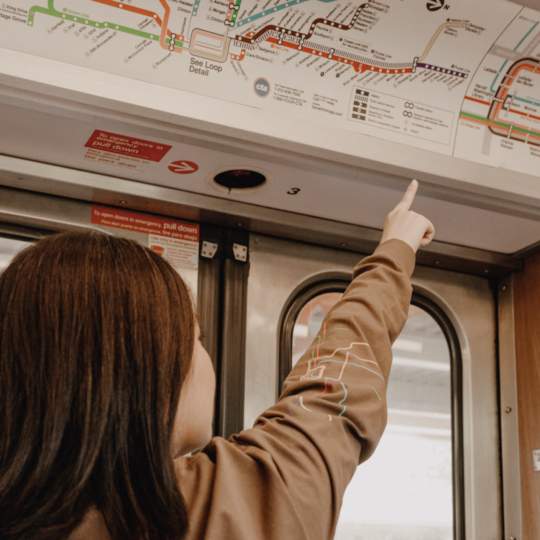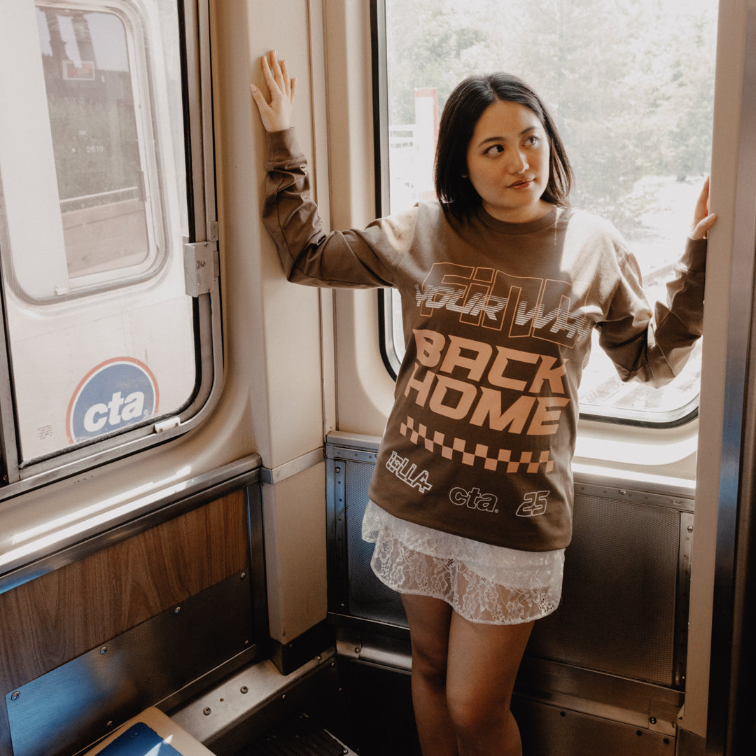 Introducing the Find Your Way collection, an online exclusive, three-way collaboration between Lollapalooza, Chicago Transit Authority, and Chicago streetwear designer Ellen Ma. The Find Your Way long sleeve tee is the perfect fashion piece to guide you through the city, from one line to the next.